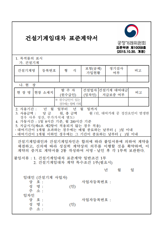 건설기계임대차 표준계약서 파일을 다운로드하여 사용하세요