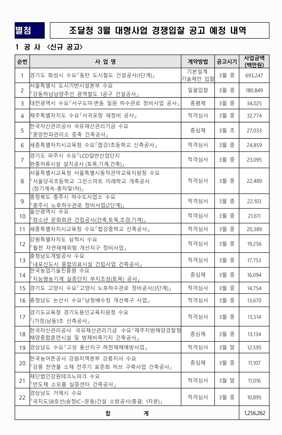 조달청 3월 대형사업 총 216건, 4조 7,924억원 상당 입찰 예정 보도자료조달청 3월 대형사업 총 216건 4조 7,924억 원 상당 입찰 예정조달청 3월 대형사업 총 216건 4조 7,924억 원 상당 입찰 예정
