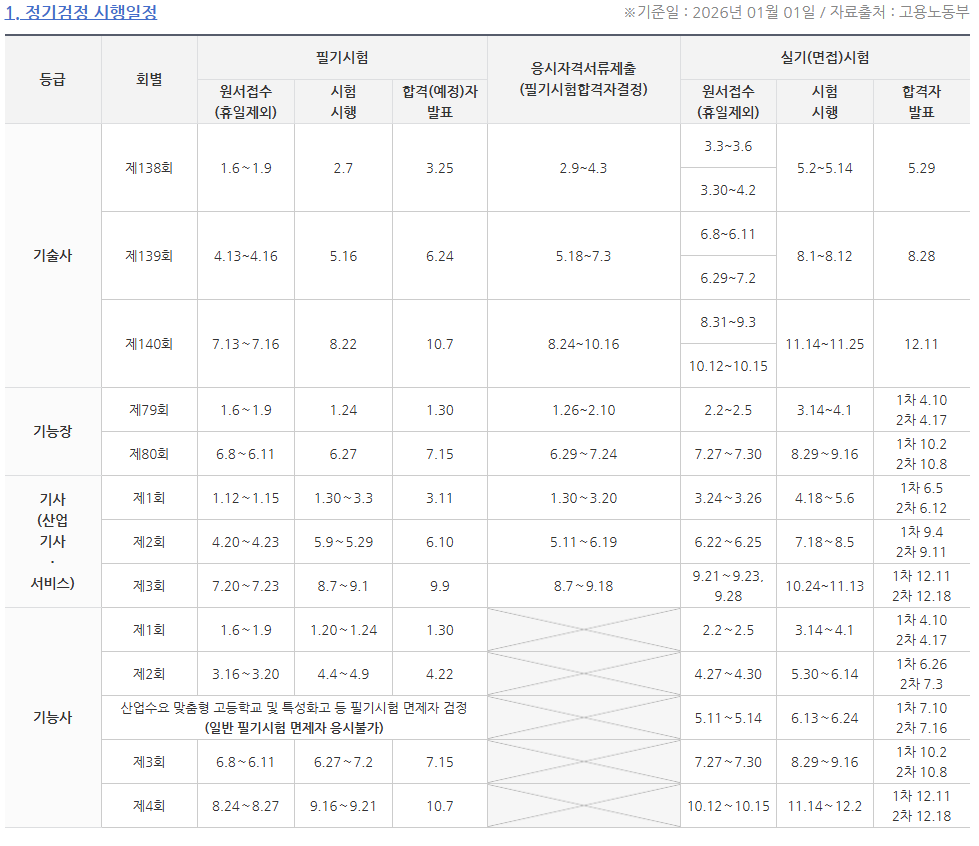 검정시험일정 및 종목